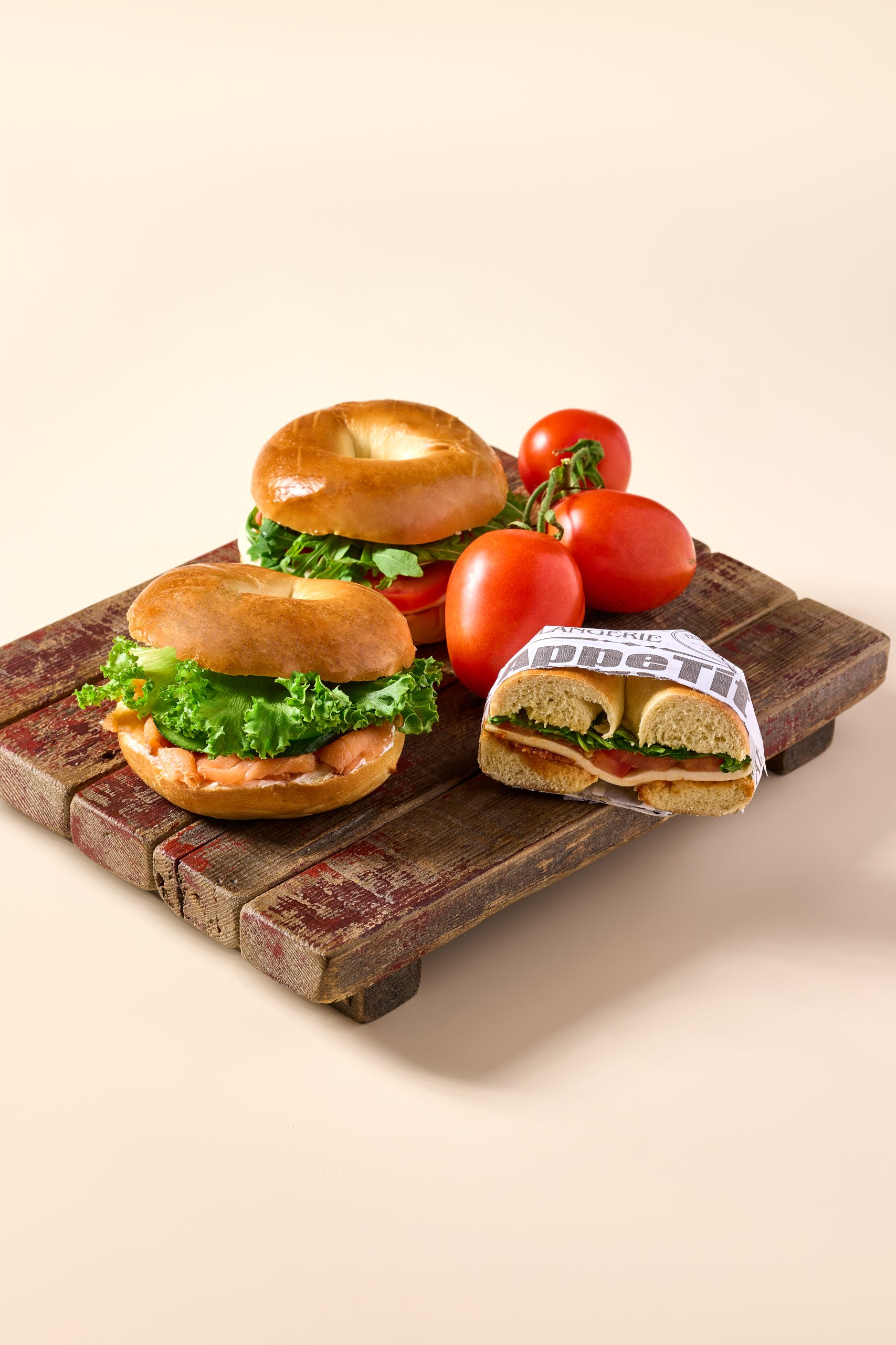 14 חצאי בייגל אמריקאי במילוי גבינת שמנת, סלמון מעושן, מלפפון וחסה /