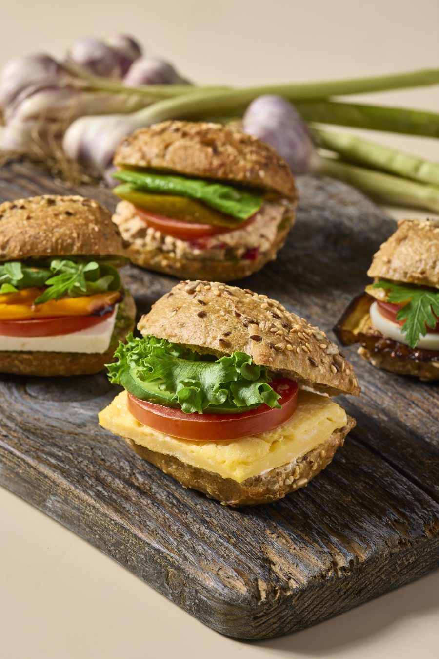 גבטינות דגנים מחיטה מלאה במילויים שונים: טונה, סביח, בלקני, חביתה.