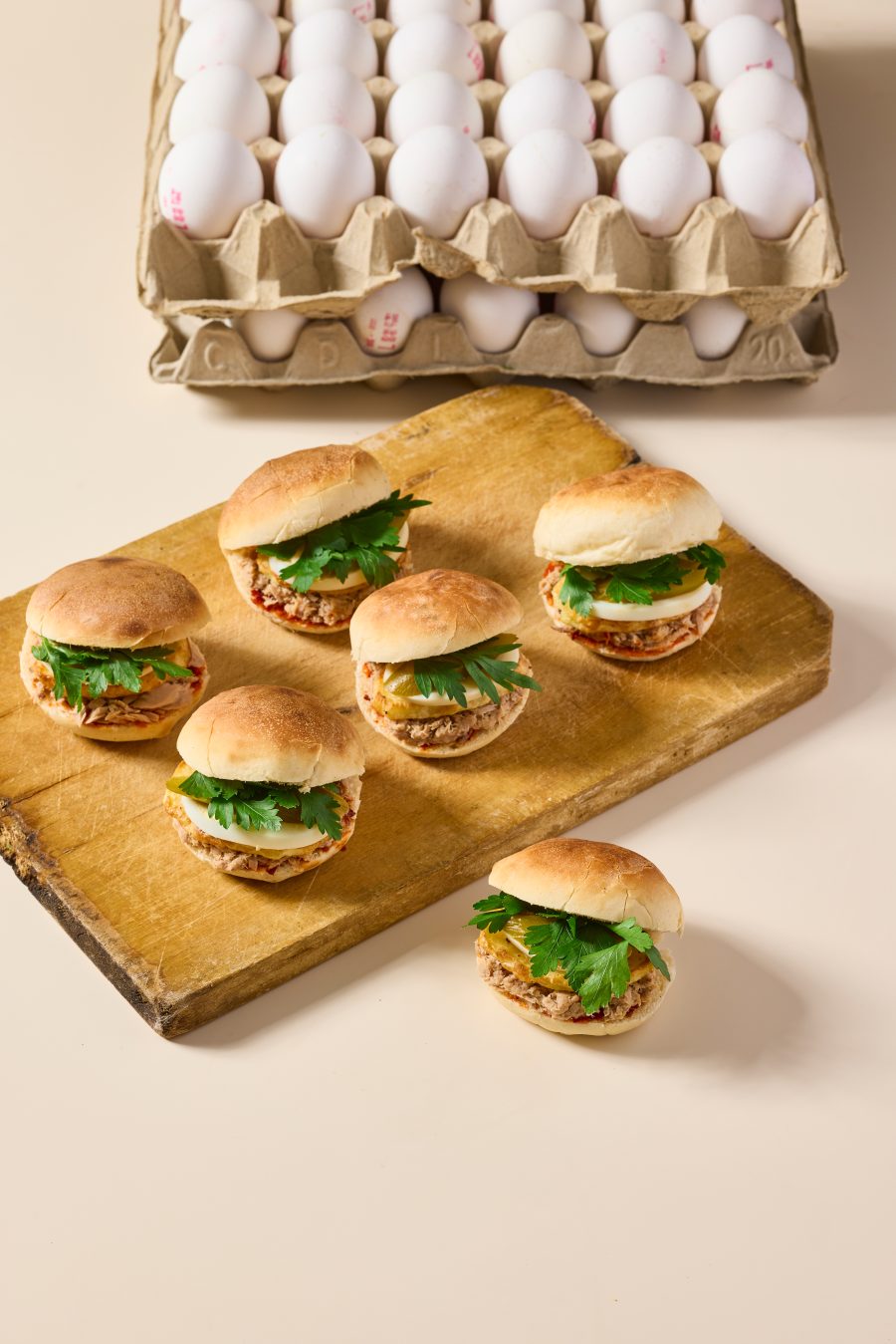 20 מיני פרנה במילוי אריסה תוניסאית (פיקנטית), טונה, תפו"א אפוי, ביצה קשה, מלפפון חמוץ, לימון כבוש ופטרוזליה.